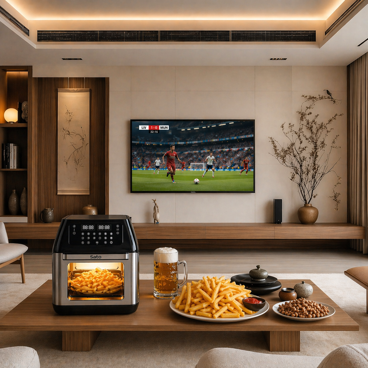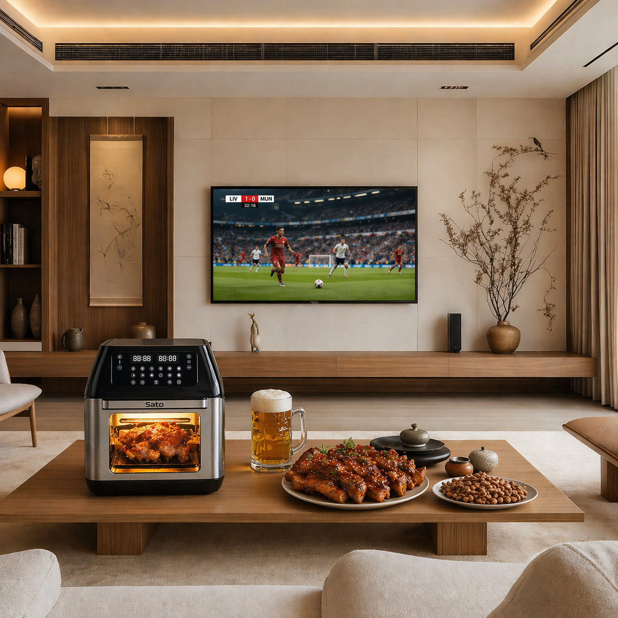 Thay vì phải ra quán đông đúc, bạn hoàn toàn có thể tự tổ chức “tiệc bóng đá tại gia” với những món ăn đơn giản, nhanh gọn nhờ nồi chiên không dầu Sato. Vừa tiện lợi, sạch sẽ lại đảm bảo sức khỏe khi hạn chế dầu mỡ.