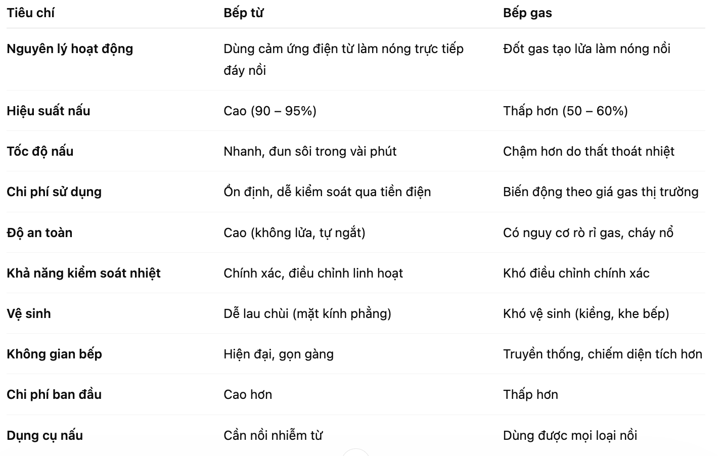 Hình ảnh bảng so sánh bếp từ và bếp gas