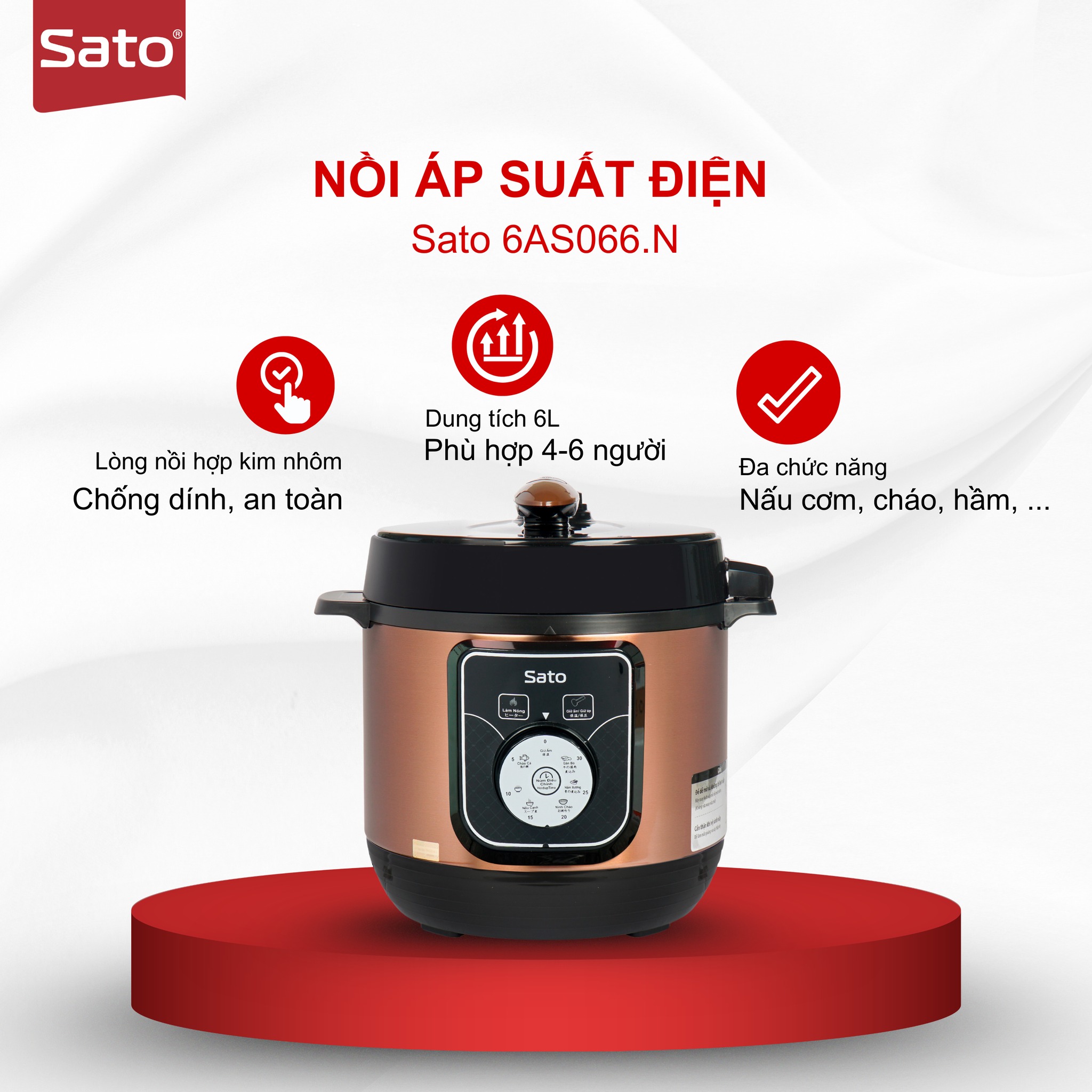 1. Nồi áp suất điện Sato 6AS066.N – Nấu nhanh, giữ trọn dinh dưỡng