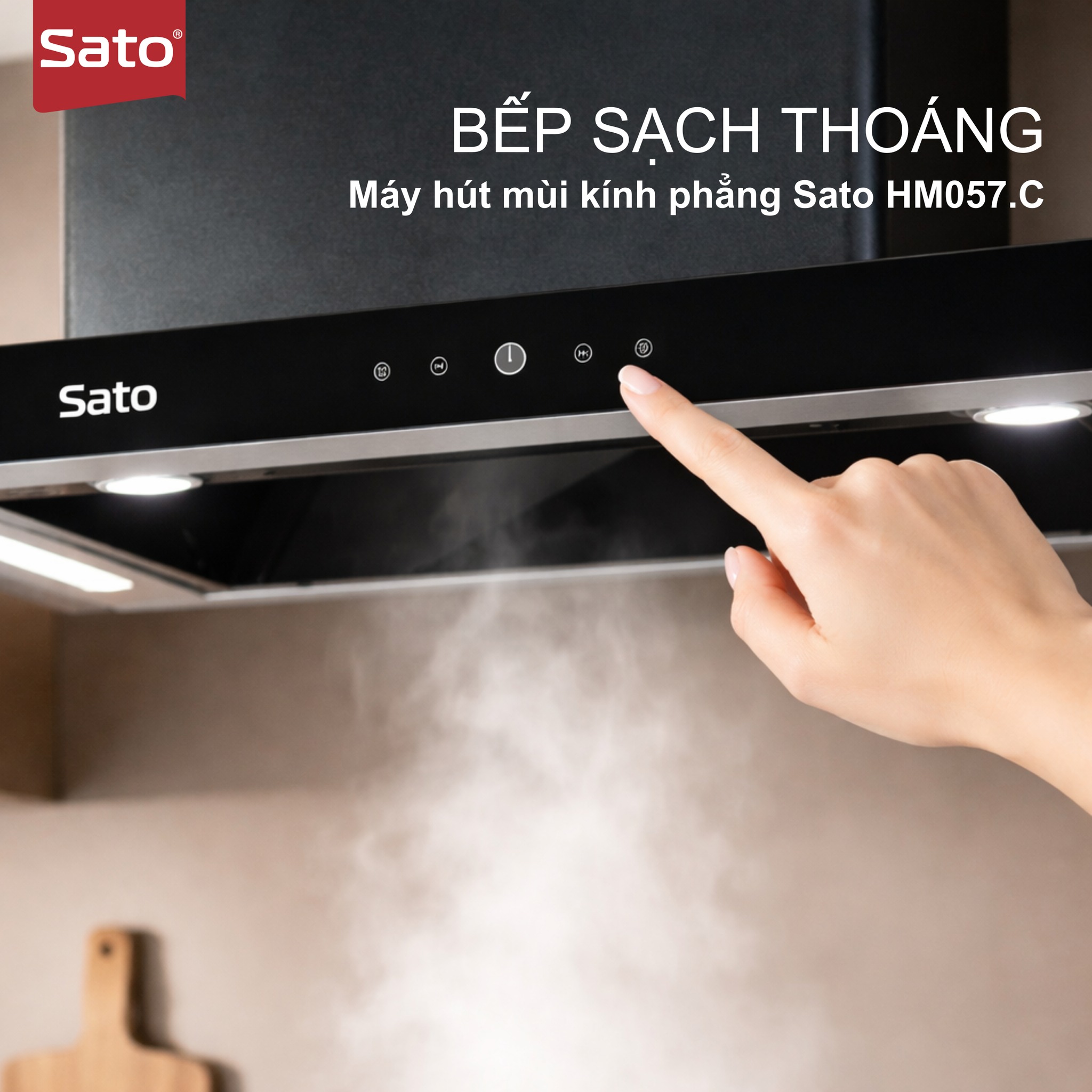 3. Bếp Sạch Thoáng – Máy Hút Mùi Kính Phẳng Sato HM057.C